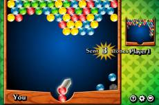 Notre populaire Boules Rebondissant est assez addictif pour vous faire rester devant l’ordinateur, en essayant de monter sur le trône du classement. Et maintenant nous l’avons fait encore plus passionnant – la Bataille de Boules Rebondissant est ici! Invitez vos amis à organiser un tournoi, ou jouez contre un joueur en direct en ligne, puis ressentez le plaisir sans fin du jeu extraordinairement amusant! De même que la version solo, votre but dans la Bataille de Boules Rebondissant est de tirer et détruire des groupes d’au moins 3 boules de la même couleur. Mais votre clé à la survie ne se trouve pas seulement ici – vous devez attaquer votre adversaire et transmuter ses pièces en pierres, de sorte qu’il ne puisse pas faire des coups avant qu’il ne pénètre dans votre chemin. Quand le jeu commence, des boules de couleurs multiples s’empilées en rangées descendront lentement du haut de l’espace de jeu. Une boule de couleur est mise dans le lanceur en bas de l’aire, et la prochaine boule sera aussi prête. Déplacez votre souris pour changer la direction du lanceur, cliquez ensuite pour tirer sur un groupe de 3 ou plus de boules de la même couleur, pour que le groupe entier de boules puisse être détruit. Quand les boules sont supprimées, les pièces qui sont seulement attachées au groupe de boules détruit seront aussi éliminées, par exemple, lorsque vous ayez détruit un groupe de boules bleues, les boules rouges et jaunes qui sont seulement attachées aux boules bleues seront aussi supprimées. L’espace de jeux de votre adversaire sera affichée à droite de l’écran, vous permettant d’observer le processus actuel de jeu de votre rival. Quand vous faites tomber 5 boules avec les pièces détruites en un seul coup, 3 boules de votre adversaire sera transformées en pierres et ne peuvent plus être supprimées directement. Chaque 2 pièces qui se font tomber en plus au-dessus des 5 pièces transformeront 2 boules de plus de votre adversaire en pierres, par exemple, lorsque 7 de vos pièc