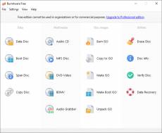 Keywords: free burning software, burning software, burn cd, burn dvd, burn blu-ray, dvd burner, create bootable dvd, create bootable cd BurnAware Free is a full-fledged, easy-to-use, free burning software which allows users to write all types of files such as digital photos, pictures, archives, images, documents, music and videos to CDs, DVDs and Blu-ray Discs. With BurnAware Free, you also will be able to create bootable or multisession discs, high-quality Audio CDs and Video DVDs, make and burn disc images, copy and backup discs. Burn Burn files and folders to CD, DVD or Blu-ray Discs. Append or update multisession discs. Burn standard or boot disc images. Burn ISO files to multiple recorders simultaneously. Create Create boot CDs or DVDs. Create Audio CDs. Create DVD-Video discs. Create MP3 CD / DVD / Blu-ray Discs. Make standard or boot disc images. Copy Copy CD, DVD or Blu-ray Discs to ISO images. Copy from discs to discs. Other Verify discs byte by byte. Recover files from damaged discs or different sessions. Extract audio tracks from Audio CDs. Erase and format re-writable discs. View detailed disc and drive information.