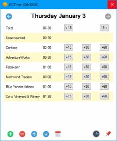 Keywords: time, track, tasks, tracking CCTime is a utility to help track how much time you spend on different tasks during your work day. Tracking time is tedious, so focus lies on simplicity and automation. CCTime stays out of your way while still being readily accessible, so you can focus on actual work. CC is short for Click Click, because two clicks is all it takes to register time on a task! CCTime sits in your system tray and automatically hides when not in use. You can see how much time you've spent in total each day, and how much of that time has not yet been assigned to tasks. For each week you can get a report, summarizing your work that week