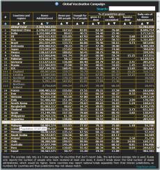 Keywords: vaccine statistics, covid vaccine, doses per day, Covid-19, coronavirus, vaccine tracker, Pfizer vaccine, Moderna, AstraZeneca, BioNTech, Oxford, Sputnik V, Sinopharm, Sinovac, Gamaleya, CanSino, Johnson & Johnson vaccine, bloomberg vaccine, coro If you live in one of the countries where vaccination has already begun or just want to receive information about it, you can install COVID-19 Vaccine Tracker gadget. The default window of the gadget displays information related to vaccination against COVID-19, namely the number of Doses Administered. Depending on the settings, the gadget monitors data at a global scale or at the US. Finally, you can place information on the gadgets main window about the country or state you've selected, for example, home country, to monitor it. You can go one step further and view details by country or states in a dedicated flyout window. Just click to "View by country" string on gadget's body. Due to the integrated search function, you can easily find a certain country and analyze the corresponding values more carefully. Also, can easily sort this data by the total number of detected cases. COVID-19 Vaccine Tracker is meant to help you keep an eye on the evolution of the vaccination in all the affected countries, while also getting the chance to customize the default colors to your liking (you can easily restore the default settings if you are not satisfied with the outcome). Furthermore, you can set it to update the information whenever you want, with a single mouse click on refresh icon, without needing to wait until the default 12-hours refreshing interval is up.