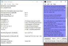 Keywords: calculator, spreadsheet, word, processor, text, document, repeat, high, precision CalcSheet is an alternative to a spreadsheet program that enables you to set out complex calculations in a word processor or text editor document with explanatory text mixed in with the numbers and commands. You can change one or more numbers or commands and recalculate with one click. You can also lay out the calculations in a way that suites you and that will make it a lot more obvious what the calculation is about than a spreadsheet does. You get 100 free calculations in the shareware version, and registration to get unlimited calculations costs only $9. With one click you can hide calculating commands for a clean display, and restore them again with another click. CalcSheet includes 15 sample calcsheets, from which you can learn how to create your own calcsheets. Its pretty straightforward, actually, but there is a Help menu as well that explains how it works. The repeatuntil command pair enables you to do calculations with multiple iterations, such as calculating infinite series. The standard resolution of calculations is 29 significant figures, but an Ultra Precision mode can be chosen, enabling up to 500 significant figures. CalcSheet can do statistical calculations on arrays of data, as well as trigonometric and other scientific calculations. For fun, the 1G Drive command prints out a log of various journeys in a spacecraft accelerating at 1G, showing how far its occupants could travel nudging the speed of light, and how much time would pass on Earth in the process. CalcSheet also contains some other apps that are hidden to start with, to keep CalcSheet clear and simple, but can be opened up by clicking just one menu item. These other aps include a high precision calculator with inputs and outputs you can paste and copy to, a typing speed ap, an area calculator for online maps such as Google Earth, and an abbreviation expander. Plenty to play with if you are interested, but CalcSheet is, I believe, what is most new and useful!