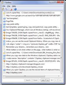Keywords: Clipdiary, Clipboard Diary, Clipboard history, Clipboard manager The contents of the system clipboard constantly change as you use it to copy and paste various information. But your data isn't stored for a long time - when you turn off the computer or just copy some other text, the data is lost. Usually, that isn't a big problem, but have you ever needed the data you copied 30 minutes or an hour ago? Maybe your computer is hanging and the program hasn't saved the data. Or you may simply want to recall what you were doing at the computer a month or a year ago. There are many cases in which you might want to restore your clipboard content. We suggest a nice solution. Install our clipboard utility and you will never lose data once copied. This clipboard tool, which runs on Windows startup, will record everything placed on the clipboard into the database. All you have to do is press the Hot key combination or click the program icon in the system tray. Clipdiary can log clipboard history and record data in several formats: plain text, RTF (Rich Text Format) and images (BMP), html, files and so on. So, besides saving parts of text, you can easily make series of screenshots, and Clipdiary will save them for you. Why not try it?