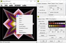 Keywords: animation, game, farben, color, life, sound, grafik, zellen, palette, klang, klanggrafik Color LIFE stellt das Fortpflanzungsverhalten von Mikroorganismen grafisch anschaulich dar. Die Rechenregeln können frei gewählt werden ebenso die Schrittweite und Ausgabezeit der Generationen. Farbpaletten können selbst erstellt werden. Mit dem Gestaltungsablauf werden neue bemerkenswerte Rechenregeln und schöne grafische Muster gefunden. Color LIFE Sound spielt das Zellenmuster mit 3D-Klang ab und zeigt dabei die Klanggrafik jeder Generation. Hierzu kann man aus vier verschiedenen Klangthemen jeweils 24 Sounds auswählen. Die Raumgröße, der Takt und die Lautstärke sind variabel einstellbar. Alle Einstellungen können als Datei abgespeichert werden.