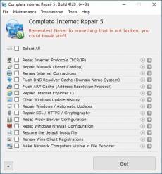 Keywords: Rizonesoft Complete Internet Repair, Fix Internet, Fix Network, Repair Network, Reset TCP/IP, Repair Winsock, Renew Internet Connections, Repair Internet Connections, Flush DNS, Reset Firewall, Reset Proxy Settings We are living in an Internet age and with any widely used technologies, come a new set of problems. Most people cannot function without the internet. Because services like Facebook, Twitter, YouTube, accounting, backups and document editors becoming more and more popular. But what to do when your internet connection breaks down. Yea sure; a technician is an option, but this is an expensive option. Enter Complete Internet Repair. Complete Internet Repair is a free Open Source Power Tool to repair internet connections and get you up and running in no time. Please note that it is unable to repair hardware faults or get your ISP up and running or not yet. In short; Complete Internet Repair will attempt to repair your internet connection. Complete Internet Repair might help (no promises) if you are experiencing any of the following problems: - Internet or network problem after removing adware, spyware, virus, worm, Trojan horse, etc. - Loss network connection after installing/uninstalling VPN, firewall or other networking programs. - Unable to access any website or can only access some websites. - Pop-up error window with network related problem description. - No network connectivity due to registry errors. - DNS lookup problem. - Fail to renew the network adapters IP address or other DHCP errors. - Network connectivity issue with limited or no connections message. - Windows update does not work. - You are having problems connecting to secured websites (ex. Banking). - Internet Explorer stopped working or crashes all the time. - Sticky proxy server settings.