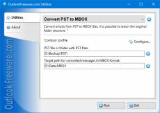 Keywords: free, freeware, outlook, add-in, add-on, convert, pst, mbox Free Outlook PST to MBOX converter. This utility converts email messages from PST data files into MBOX format compatible with many email programs and systems: Windows, MacOS, Linux and Unix. Also, mail apps like: Thunderbird, Apple Mail, Eudora, Entourage and others. To convert PST2MBOX, select the source PST file or folder with PST files and specify the destination folder. Run the utility and all further work will be done automatically. The tool allows you to create separate folders for each PST file, create a folder structure from folders inside PST files, set filters by dates, sent or received status, and use macros for file and folder names. The command line in the product provides the ability to convert a large number of PST files to MBOX in bulk using scripts, batches, PowerShell, and other automation tools. To convert PST to MBOX by schedule, use the product's command-line and the standard Windows Task Scheduler. This allows you to flexibly configure the schedule settings and use the program automatically even without interactive login to the user account.