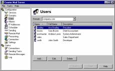 Company: Roman Rugalenko Country: Russian Federation, Krasnodar ASP member: No Company Web site: http://www.courierms.ru Site of program: http://www.courierms.ru Application info: http://www.courierms.ru Author: Roman Rugalenko Sales email: support@courierms.ru Support email: support@courierms.ru License type: Shareware Class: Servers::Mail Servers Specific: Internet Categories: Communication :: E-mail, Internet :: Email Platform: Windows OS: Win2000, WinXP, Win7 x32, Win7 x64, Windows 8, Windows 10, WinServer, WinOther, WinVista, WinVista x64 System requirements: TCP/IP network protocol Language: English, Russian Limitations: Non-registered copy of CMS allows to create at most three users.
