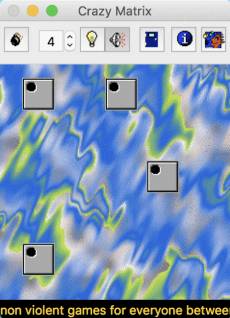 Keywords: Crazy Games, Denkspiel, Freeware, Matrix, Schalter, Lampen, Crazy Matrix Logisches Puzzle um Schalter und Lampen. Das Spiel besteht aus einem System aus Schaltern und Lampen (Matrix). Beim Betaetigen eines Schalters wechseln eine oder meist mehrere Lampen ihren Zustand (Hell oder Dunkel). Es gibt aber genau eine Kombination von Ein- bzw. Ausschaltzustaenden der Schalter, bei der alle Lampen leuchten. Ziel des Spiels ist es, diese Kombination herauszufinden. Die Zahl der Schalter bzw. Lampen kann zwischen 4 und 25 frei gewaehlt werden, was logischerweise auch unterschiedliche Schwierigkeitsgrade mit sich bringt. Als kleine Hilfe kannst Du bestimmte Schalter, deren Funktion Dir bereits bekannt ist, sperren.