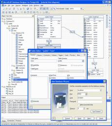 Keywords: gui, pgsql, postgresql, model, schema, sql, interactive, sql, admin, adminisrator, development, tool, administrative, query, execute, resultset, import, export, converter, diagram Database Designer for PostgreSQL is an easy CASE tool with an intuitive graphical interface allowing you to build a clear and effective database structure visually. See the complete picture (diagram) representing all the tables, references between them, views, stored procedures and other objects. Then you can easily generate a physical database on a server, modify it according to any changes you made to the diagram using fast ALTER statements. Database Representation: Place objects of your database on a diagram, a virtual sheet of paper. See and realize the structure of your database and its objects: tables, views, stored procedures, functions and relationships between them. Construct schemas, domains, tables, indexes, columns and triggers. You can import already existing databases to a diagram by reverse engineering. Easy Database Generation and Maintenance: With the database designer, you can quickly create a ready-to-use PostgreSQL database with just a few clicks, and then keep its structure up-to-date by synchronizing it with the changes you made to a visual diagram. Simply change the diagram, and the Designer will generate the complex SQL statement for database modification to bring it to the state of the diagram, keeping the data safe. Moreover, you can synchronize several databases to the state of your diagram. Documentation: Printing, Generating Graphics and Reports: Generate powerful reports that describe all the database objects within your diagram. You can export a graphical representation of the diagram to EMF, JPEG, PNG, GIF and other popular formats or print the diagram out on multiple pages.