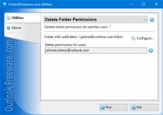 Keywords: free, freeware, outlook, add-in, add-on, folders, permissions, delete Free tool for removing Outlook folder permissions for selected users in bulk. This utility removes selected users from permission lists of specified Outlook folders in Office 365, Exchange Server mailboxes and Exchange Public Folders. The utility works with user permissions on folders of any type: mail, calendars, contacts, tasks, and others. It allows you to revoke the permissions of selected and anonymous users, as well as default folder permissions. With standard Outlook tools, you cannot remove the desired users from multiple folders permissions at once - you must edit the permissions for each folder individually. Also, you cannot process multiple mailboxes or Exchange public folders. Outlook provides no way to edit the folder access rights by schedule and from the command line. Our utility extends Outlooks capabilities for editing permissions of Outlook, Office 365, and Exchange Server folders. You just need to select the required folders in the mailbox, select the users removed from the access lists and run the utility. After you remove the user from the permission list, Outlook and Exchange automatically apply the default permissions. Thanks to the support of the command line, you can use the utility in batch files and scripts. This can be useful in various scenarios: from scheduled run to migrations and centralization of the management of access rights to Outlook and Exchange folders.