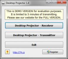 Company: 74.cz, s.r.o. Country: Czech Republic, Czech Republic, Prague ASP member: No Company Web site: http://74.cz Site of program: http://74.cz Application info: http://74.cz/desktop-projector Author: Michal Kökörčený Sales email: info@74.cz Support email: info@74.cz License type: Demo Class: Audio & Multimedia::Presentation Tools Specific: Audio Categories: Education :: Teaching, Multimedia and Design :: Presentations, Multimedia and Design :: Miscellaneous Platform: Windows OS: Win2000, WinXP, Win7 x32, Win7 x64, Windows 8, Windows 10, WinServer, WinOther, WinVista, WinVista x64 System requirements: MS Windows, Local Area Network Language: English Limitations: 5 minutes of transmitting