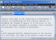Keywords: text editor, notepad, plain text, alternative to notepad, free DocPad is a free alternative to Notepad. Although it fills the same role, plain text editing, it offers an arsenal of time-saving tools: block indent/unindent, bookmarking, case conversion, customizable toolbar, encoding conversion, file history, jump to line/offset, keyboard macros, print preview, search and replace, skinnable interface, spell checking, statistics, variable pitch font, and much more. It also includes a built-in calculator, calendar, and character map. DocPad is pure freeware, does not display advertisements, and does not install third party apps.