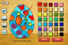 Проявите свое творческое начало и высвободите свое эстетическое чутье придумав свое Пасхальное яйцо с огромным ассортиментом узоров, форм и цветов! Игра начинается с появлением не раскрашенного Пасхального яйца слева экрана, в то время как имеющиеся узоры находятся в верхнем правом углу, и разные формы размещены под узорами. Чтобы использовать узор, просто нажмите на левую или правую кнопку со стрелкой рядом с образцами узоров. Выбранные образцы будут увеличены и показаны между пятью ящиками, в то время как узор автоматически появиться на Пасхальном яйце. Вы можете повторить эти шаги, чтобы изменить узор. Нажмите левую и правую кнопку со стрелкой рядом с образцами форм, чтобы выбрать виды формы. Имеющиеся формы выбранного вида будут отображены под ящиками с образцами, к примеру, когда Вы выбрали снежинку, три доступных вида снежинок появятся под ящиками с образами. Нажмите, чтобы выбрать понравившийся Вам вид, затем перетяните и поместите его на Пасхальное яйцо. Вы можете еще раз нажать на форму, чтобы выбрать оптимальный размер используя колёсико прокрутки мышки или кнопки + и - на Вашей номерной клавиатуре: прокрутите наверх или нажмите кнопку +, чтобы увеличить форму, и прокрутите вниз или нажмите кнопку -, чтобы уменьшить размер. Вы также можете вращать форму нажимая левую и правую кнопку со стрелкой на Вашей клавиатуре. Если Вы больше не хотите использовать форму, Вы можете нажать, чтобы выбрать ее, затем перетащите и бросьте ее в мусорный ящик справа от Пасхального яйца. Когда Вы выбрали дизайн, нажмите кнопку "Добавит цвет" в нижнем правом углу, чтобы начать красить. Вам будет предоставлена палитра из 35 цветов, она будет находиться справа от Пасхального яйца. Просто используйте кисточку для красок, чтобы выбрать цвет, затем переместите ее в необходимое положение на Пасхальном яйце. Зона будет обведена кругом и увеличена так, чтобы Вы могли легко использовать выбранный цвет. Нажмите, чтобы использовать цвет, или выберете другой цвет, если желаете. Вы можете и