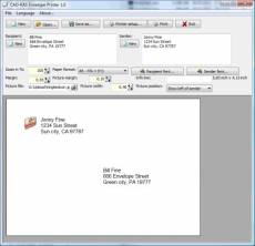 Print addresses on envelops with your desktop printer. Simply enter the from and to address and press the print button. You can also select the font and font size. A picture can be printed on the envelope. You can save the envelope project with all settings. The program can print an envelope for all recipients in a CSV file with one click. The addresses can be saved in a little address data base. Later you can simly select an existing address. The program can use mm or inchs for measurements. You can import existing addresses into this database from a CSV file.