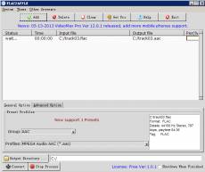 Keywords: FLAC, AAC, Audio, converter FLAC2APPLE enables you convert FLAC to MPEG4 AAC Audio for APPLE devices. Advanced Audio Coding (AAC) is a standardized, lossy compression and encoding scheme for digital audio. AAC generally achieves better size than FLAC at similar bit rates. Now you can enjoy the versatile movies on your MP4 Player wherever and whenever. Simple settings, high speed, and friendly interface. Support most popular audio formats FLAC (Free Lossless Audio Codec); It is very easy to use without any special setting, only a few clicks complete the task of convert audio; It is made for the beginner as well as having advanced functions for the professional user; It can detect your hardware configuration and decide an optimized convert scheme automatically; Fully support AMD Athlon 64 X 2 Dual-Core Processor and Intel(R) Pentium D Dual-Core Processor; Provide greater than 300% converting speed by multithreading, so fast beyond your imagination; Both multithreading and batch conversion supported; Easy to use - Just two clicks, everyone can become the master of FLAC2APPLE.