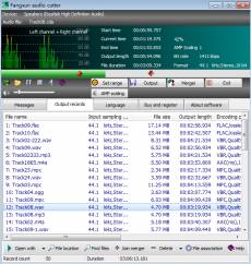 Keywords: Audio cutting, merging, file type conversion, encoding parameters conversion, audio cd ripping. 1.Functions: Provides cutting and merging audio or video files, format conversion and encoding parameters, outputs audio file. 2.Audio file cutting: Locate output range rapidly by playback progress bar and specify output range accurately by a dialog. 3.Merger project management: Manage files to be merged by a merger project file. Can create, open or save a project . Can add, remove files and adjust merging order of files in a project. Can set output range of a file, can copy and paste merger items. 4.Cut on merge: the software outputs the selected range directly in the merging process, without the need of cutting the output range to a disk file , then adding it to merger project. 5.Flexible way to duplicate merger items: Using 'copy' and 'paste' functions, can duplicate the selected merger items you need in a flexible way. 6.Mix processing: User may choose whether to mix the residual source channels with the output first channel. 7.CD ripping: Rip cd audio data using a cda file on optical disk, extract the content of specified time range. 8.Conversion of encoding parameters: Specify encoding parameters of file type through output options. 9.Multichannel output: Multichannel output support for wave, aif, and, ogg, flac, wma,WavPackcaf , tta file. 10.Output options setup: Sets output path, encoding parameters and audio file tags. 11.Output speed adjustment: adjust output speed according to occupancy of cpu , avoid taking too much cpu time. 12.Outputs management: Automatically record details of outputted audio files, can play, locate, join merger or delete specified files. 13.File association: Through file association setting, you can operate audio files on windows explorer directly by the software, like open files or add files to the merger list.