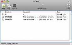 Keywords: fastfox, typing expander mac, word expander mac, text expander software mac, word expander software, autotext mac, word expander, medical transcription software mac, transcription software mac, macro, macros FastFox will dramatically reduce the time you spend typing. FastFox Mac Text Expander is an easy to use typing expansion utility that can create and store keyboard shortcuts that, when pressed, will expand to lines of text. FastFox allows the user to define keywords that become the shortcuts. When FastFox sees that a keyword has been typed by the user that keyword will then be replaced by the expanded text. FastFox macros, or simulated keystrokes and mouse clicks, can work for you. This shorthand software is ideal for people who are continually typing the same thing over and over or frequently visiting the same web sites to perform common activities. FastFox Text Expander for Mac OS X Features: * Instant text expansion from keyboard shortcuts (e.g., "QBF" expanding to "The quick brown fox jumps over the lazy dog") * Use FastFox shortcuts and macros while you type in any program * Save an unlimited number of keyboard shortcuts * Auto complete feature learns what you type most and makes suggestions for insertion on the fly * Expanded text shortcuts can insert simple text, rich format text or images * Create advanced macros to simulated keystrokes and mouse clicks and automate functions in addition to inserting text * Share shortcuts with others in the office or department * Audio tone played when a keyword has been matched and replaced * Simple and intuitive user interface for day-to-day operation