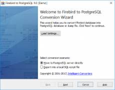 Company: Intelligent Converters Country: Russian Federation, Moscow ASP member: No Company Web site: http://www.convert-in.com Site of program: http://www.convert-in.com Application info: http://www.convert-in.com/fbr2pgs.htm Author: Oleg Fedorov Sales email: service@convert-in.com Support email: service@convert-in.com License type: Shareware Class: Business::Databases & Tools Specific: Business Categories: Platform: Windows OS: Win2000, WinXP, Win7 x32, Win7 x64, Windows 8, Windows 10, WinServer, WinOther, WinVista, WinVista x64 System requirements: Windows XP(SP2 or SP3)/2003/Vista/Server 2008/7/8/10, Firebird or Interbase environment Language: English Limitations: Demo version converts only 50 records per table and does not convert foreign keys
