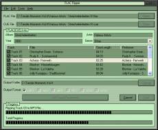 Keywords: FLAC + CUE, FLAC Ripper, FLAC music, FLAC file, FLAC format, FLAC convert, FLAC to MP3 Flac Ripper is a FLAC music CD image (FLAC + CUE) file ripper to split large FLAC music CD image (FLAC + CUE) file to separate MP3 files or other format audio files including WAV, FLAC, VOX, G726 and G723. FLAC music CD image (FLAC + CUE) is a compress digital music which is compressed from a music CD, all the tracks are packaged to a single compressed image file. With Flac Ripper, you can extract all or part of tracks from the FLAC music CD image (FLAC + CUE) file and convert them to separate MP3 files or other format audio files. A CUE file is required to rip the FLAC file, the CUE file contains the information of every track in the FLAC file. Features: * Easy to use, you only need to select a FLAC file and a CUE file. * Export file in MP3, WAV, FLAC, VOX, G726, G723 format. * Supports MP3 ID3v1 and ID3v2 tag. ID3 tags are collected from the FLAC file and CUE file automatically. * Embeds a MP3 ID3 editor support MP3, MP2, MPEG, MP+, MPC, OGG and AVI audio formats. * Supports customizable output MP3 bitrate from 8 kbps to 320 kbps. * Supports customizable output MP3 sampling frequency from 8000 Hz to 44100 Hz. * Supports customizable MP3 quality, the better quality the slower ripping. * Supports customizable audio format for FLAC, VOX, G723, G726 including channel, sampling frequency and bitrate. * Supports automatic folder and filename creator with album, artist, title and track number. * You can extract all tracks or part of tracks from the FLAC music CD image (FLAC + CUE) file. * Supports multilanguage including English, French, German, Spanish, Italian, Dutch, Portuguese, Russian, Simplified Chinese, Traditional Chinese. * 11 skins are available.