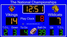 Keywords: football, scoreboard, score, board, time, clock, tracker, game clock, timeouts, down indicator, timeouts Use the computer and display you already have with our football scoreboard software to transform your pc into a virtual football scoreboard. Our scoreboard download is great for scorekeeping football games in gyms, arenas, fields, or multipurpose facilities. Football Scoreboard Pro features a simple to use mouse and keyboard interface, allowing for easy control of all functions of the computer scoreboard. Football Scoreboard Pro is an inexpensive and portable alternative to costly physical scoreboards. Using our software scoreboards offers the flexibility to switch between different sports using the same hardware, which fixed scoreboards cannot match. Our Football Scoreboard Pro software is shareware, so you can try our scoreboard download for FREE before purchasing. FEATURES: -Easily accessible full screen mode. -Optional secondary control screen. -Optional secondary play clock screen. -Click and type or tab and type interface for easy control -Fully customizable scoreboard colors -Customizable team names for easy identification. -Game clock shows and can be set to tenths of a second -High visibility LED digits -Clean and simple design allows for easy reading by spectators -Fits most monitors by adjusting to different display resolutions. -Portable USB key allows you to quickly and easily move registration between computers. INCLUDES: Game clock Play clock Team scores Team names Team logos Current quarter Possession arrows Team timeouts left Current down Yards to go indicator Ball on indicator Scoreboard picture (can be used for advertisements) Scoreboard title KEY OPTIONS: Customizable keys make controlling the scoreboard quick and easy. COLOR OPTIONS: Easy to use options allow you to customize every color to match your team's colors. TEAM OPTIONS: Home and visitor team names can be customized, and team logos can be displayed. WEB REMOTE OPTIONS: Configure settings. see www.pcscoreboards.com