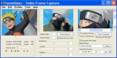 Keywords: frame capture, capture image from video, image from video, video still, video frame, video image, video thumbnail, movie frame, movie image, movie to picture, picture from movie, batch process, command line Capture image from video files. FrameShots captures images from videos like your MPEG/AVI/WMV/DivX/MOV/MKV/MP4/MPG files etc. files to create high-quality video thumbnails. Features include the ability to navigate frame by frame to find the perfect picture of your movie. It has an option to auto-trim any black borders around your movie stills. The program allows you to capture entire video frames or just the video snapshot images straight to the clipboard for easy transfer to Photoshop or any other image editing software. It also has a batch mode feature which will automatically capture an image from a video at periodic set intervals during the video file. Save video still image to JPG/JPEG and other image formats. Video screenshots can be adjusted for brightness and contrast. Also, apply automatic watermarks to your pictures from video. Or use the command line options to process multiple videos from batch files or other scripts.