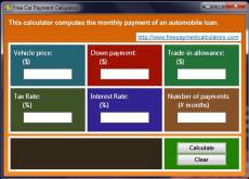 Keywords: Free Car Payment Calculator Managing any loan well takes a lot of effort when it comes to making the right payments on time. In order to help users in the same, the Free Car Payment Calculator is the right tool. It is a comprehensive tool that lets users decide the budget for their car; choose the right loan type and the repayment options. And what makes it even better is that it is absolutely free of cost. The software can be downloaded by anyone who has such a requirement. All that is needed is a device that runs on Windows OS. The installation process does not pose any serious threats as it is absolutely safe without any malware. It takes very less time as the file size is small. There is no compromise when it comes to the speed and performance of the device. After the software is installed, users need to provide the relevant information and get the desired results. Things such as price of the car, the interest, repayment period, taxes, etc, need to be input. The Free Car Payment Calculator will calculate the monthly instalment which needs to be paid by the user and the exact time when he or she will repay the total amount. Using this information, anyone can take the right decision when it comes to an auto loan. It is a very handy tool which can be put to use by even a novice. The interface is pretty straightforward and there are no complex settings. It is reliable and fast and works on low to moderate amount of system resources. Users can plan their car payments effectively using this app and that too, for free. There are a number of users who have made the most of the Free Car Payment Calculator and it is definitely worth considering.