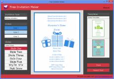 Company: Media Freeware Country: United States of America, Seattle, WA ASP member: No Company Web site: http://mediafreeware.com Application info: http://mediafreeware.com/free-invitation-maker.html Author: Sams Brown Sales email: support@mediafreeware.com Support email: support@mediafreeware.com License type: Freeware Class: Graphic Apps::Other Specific: Desktop Publishing Software Categories: Multimedia and Design :: Presentations Platform: OS: WinXP, Win7 x32, Win7 x64, Windows 8, WinVista, WinVista x64 System requirements: Windows Language: English Limitations: No limitations