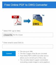 Бесплатный онлайн-конвертер PDF в DWG, разработанный компанией СadSoftTools, преобразовывает файлы в AutoCAD формат с возможностью дальнейшего редактирования. Сглаженность дуговых объектов, возможность редактировать тексты. Пользователю достаточно выбрать PDF-файл, указать свой эл.адрес, и всего в течение нескольких секунд на указанный email придет ссылка для скачивания полученного DWG-файла. И нет необходимости устанавливать другие СAD-приложения!
