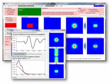 Keywords: wave optics, full vectorial, waveguide simulation, optical waveguides, waveguide educational software, beam propagation method, finite difference Full-vectoral (vectorial) wave-optics beam propagator for optical waveguides that solves for beams of horizontal and vertical polarizations. Create your own optical waveguide structure using the graphical user interface, define the input beam, define a waveguide length, then press one button to propagate the beam through the waveguide. See the output beam's irradiance distribution and the beam's profile as it propagates. You can also include gain in the waveguide to simulate fiber laser amplifiers. Optical waveguide structures include rib waveguides, step-index fiber waveguides, photonic crystal fiber waveguides, multi-core fibers, hexagonal segment fiber waveguides, tapered fibers, and graded-index fibers. Use advanced features like imaginary-z-axis propagation to find the fundamental mode and all the higher-order waveguide modes. Then use these modes as inputs. Use birefringence, gain, gain saturation, the reference index, propagation step size, propagation distance, or nonlinear index. You may also change the resolution for the calculations. Choose from several input beams that include Gaussian beam, calculated mode, a previously-saved optical field file, or use the current output as an input. Input beams can be polarized in the horizontal or vertical direction, or both (45 degree polarization). You may save your project files for later use. This is also the companion software for the book: Introduction to Modeling and Simulation for Optical Waveguides.