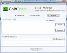 Keywords: merge pst, merge pst files, pst merge, merge outlook pst files, combine pst files, join pst GainTools PST Merge is a software for managing multiple Outlook emails into a single file. It allows you to merge multiple Outlook PST files. Outlook PST merge is one of the simplest application you'll ever have to deal with. The interface is a small window in which you can import multiple PST files by using either the file browser button. So, all you have to do is arrange your Outlook PST files in the list and complete this task by clicking the 'Merge' button. To sum things up, GainTools Merge PST Software is straightforward, easy to use for merging unlimited PST files and we strongly recommend it to all users. Free download GainTools Merge PST software and use all the functions free of cost. This application will support all version of MS Outlook as well as Windows operating system.