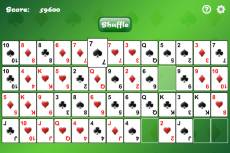 रिक्त स्थान भरें और अपने डेक को व्यवस्थित करें! इस खेल में आपका काम पत्तों को इस तरह पुनः व्यवस्थित करना है ताकि प्रत्येक पत्तों की झांकी में बाएं से दाएं दुक्की से बादशाह तक समान सूट के पत्ते रहें। खेल प्रारंभ होने पर 52 मानक पत्ते चार झांकियों में बराबर-बराबर बांटे जाएंगे। फिर चार इक्के निकाल लिए जाएंगे और 4 अंतराल दिखेंगे। जब पत्ते के दाईं ओर एक अंतराल होता है, तो आप इसे भरने के लिए समान सूट का ठीक ऊपरी रैंक वाला पत्ता क्लिक करके खींच सकते हैं, उदाहरण के लिए, जब हुकुम की दुक्की के दाईं ओर एक अंतराल होता है, तो खाली जगह भरने के लिए आप हुकुम की तिक्की को चल सकते हैं। झांकी के सबसे ऊपर बाईं ओर के अंतराल को एक दुक्की के द्वारा भरा जाता है। यदि सभी अंतराल बादशाह पत्तों के दाईं ओर होते हैं, तो खाली जगह भरने के लिए कोई भी पत्ता नहीं चला जा सकता। इस स्थिति में, आप स्क्रीन के शीर्ष पर स्थित फेंटें बटन दबा सकते हैं ताकि अब तक क्रम से बाहर वाले पत्ते फिर से फेंटे जा सकें। आप खेल को 60000 अंकों से शुरू कर सकते हैं, लेकिन आपके हर कदम पर 100 अंक कटेंगे और पत्ते फिर से फेंटने की कीमत 10000 अंकों से चुकानी होगी, इसलिए अपने लक्ष्य को पाने के लिए बुद्धिमानी से फैसले करें!