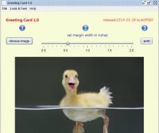 Prints greeting cards from your own images. You can most easily run it as an Applet at http://mindprod.com/applet/greetingcard.html or you can install it and run it as an application with: