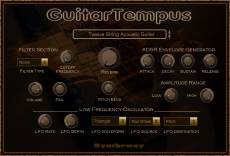 Keywords: GuitarTempus, Virtual Guitar, Guitar VST, Nylon String Guitar VST, Steel String Guitar VST, Twelve String Guitar VST, Electric Guitar VST, Virtual Electric Guitar, Electric Clean Guitar VST, Semi Acoustic Guitar VST, Daniel Laiseca, Guitar Software GuitarTempus is a virtual guitar VST plugin designed to emulate the acoustic (nylon, six and twelve steel string), semi acoustic (hollow body) and electric 'clean' guitars. The user interface includes a built-in: ADSR envelope, a LFO unit, a flexible Multimode Filter and a Glide control, offering a wide range of available sounds to expand a tailored guitar. Features: - Mode Selector to change between the following five guitars: 1.- Nylon String Acoustic Guitar 2.- Steel String Acoustic Guitar 3.- Twelve String Acoustic Guitar 4.- Semi Acoustic / Hollow Body Electric Guitar (Clean Sound) 5.- Electric Guitar (Clean Sound) - ADSR envelope generator. Attack, Sustain, Decay and Release parameters and several modulation targets. - Tremolo Section:Contains a LFO (Low Frequency Oscillator)with modulation depth, frequency and offset. This creates a kind of a trembling sound. Can be used to modulate a large number of target parameters. - Multi-mode Filter: A flexible multimode 'Infinite Impulse Response' (IIR) filter with LP (Low pass), HP (High pass), BP1 CSG (Band pass 1, constant skirt gain), BP2 C0PG (Band pass 2, constant 0db peak gain), Notch (Band-stop/Band-rejection) filters with adjustable Resonance and Cutoff Frequency range extends up to Nyquist. Gain Compensation option for LP, HP and BP1 filter types. - Glide (Portamento) Control: This function determines the amount of time it takes for the pitch of a played note to slide to the pitch of the following played note. - 32 Presets. Additionally, players can create different acoustic, semi acoustic and electric guitar sounds. - Full MIDI Automation: Complete MIDI Continuous Controller. You can use this to automate parameter changes from a sequencer, or to control your synthesizers from an external MIDI control surface.