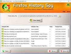 Keywords: firefox history viewer, delete firefox history, clean firefox history, view firefox history, firefox history tool, firefox history cleaner Firefox History Spy is the free software to help you easily view or delete browsing history of Firefox. On launch, it automatically detects the default Firefox history file for current user. You can also manually choose the different history file either from local or remote computer. For each website in the history file, it displays following details, + Website URL + Website Title + Visited Count + Visited Date Finally you can generate detailed history report in HTML/XML/TEXT/CSV file format. It will also allow you to remove any selected entry or all the website data from the history file with just a click of button. Firefox History Spy is fully portable and works on both 32-bit & 64-bit platforms starting from Windows XP to new Windows 10 version.