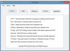 Keywords: ping, traceroute, putty, telnet, ssh, cisco, ip, scan, network, discovery, port scan, bandwidth, monitoring, troubleshooting, diagnostics IPTracker The application includes PuTTY, CMD (Command Line), Network Discovery, IP Scan and Speed Test. It is a desktop application with easy point and click for troubleshooting and diagnostics. It is effective as a training tool as well with a How To description for the network tools. There are various troubleshooting and diagnostic tools that are run from the command line. The network administrator can verify the operational status of network connections, servers and performance issues. Selecting CMD opens a window and runs an automatic ping of google.com (8.8.8.8) to verify your internet connection.