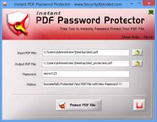 Company: SecurityXploded Country: India, Karnataka, Bangalore ASP member: No Company Web site: http://securityxploded.com/ Site of program: http://securityxploded.com/ Application info: http://securityxploded.com/instant-pdf-password-protector.php Author: SecurityXploded Organization Sales email: contact@securityxploded.com Support email: contact@securityxploded.com License type: Freeware Class: Security & Privacy::Password Managers Specific: Utilities Categories: Utilities :: Password Recovery, Security Tools :: Password Recovery Platform: Windows OS: Win2000, WinXP, Win7 x32, Win7 x64, Windows 8, Windows 10, WinServer, WinOther, WinVista, WinVista x64 System requirements: Language: English Limitations: