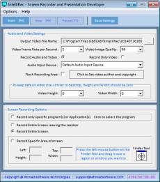 Company: Ahmad Software Technologies Country: Pakistan, Pubjab, Lahore ASP member: No Company Web site: http://www.ahmadsoftware.com Application info: http://www.ahmadsoftware.com/free-screen-recordering-software-intellirec-55.html Author: Shahid Ali Sales email: anpt80@gmail.com Support email: anpt80@gmail.com License type: Freeware Class: System Utilities::Other Specific: Utilities Categories: Screen Recorder Platform: OS: Win2000, Win7 x32, Win7 x64, , WinMobile, WinOther, WinServer, WinVista, WinVista x64, WinXP System requirements: Language: English Limitations: