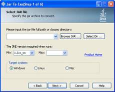 Keywords: jar, exe, jar2exe, jartoexe, service, linux, encrypt, x64 Jar2Exe is a tool to wrap jar files into binary exe files for Windows and Linux. To start java from generated exe files is more convenient: 1) Easy to start, generated exe files will find JRE on host by itself. 2) Easy to configure, generated exe files are configurable for Java vm parameters or options defined by Jar2Exe. 3) Safe to redistribute, jar files are encrypted and hidden into exe file. So the java program cannot be extracted and decompiled. 4) Function enhancement, generated exe files have many function enhancements, such as you can run java program as a Service on Windows and Linux without developing with OS. About Jar2Exe itself: 1) Jar2Exe supports Wizard Mode and Command Line Mode to run. 2) Jar2Exe runs on Windows, but Jar2Exe can generate exe files for Windows and Linux. 3) 32 bits and 64 bits supported, 64 bits edition of Jar2Exe can generate both 32 and 64 bits exe files. 4) Jar2Exe can generate "Console", "Windows GUI", "Service" 3 types of applications. 5) It supports to pack depended jar files into a single exe file. The develop license is free. If you want to redistribute generated exe files to your customers as a product, you need to purchase Jar2Exe. Without purchase, you are allowed to use Jar2Exe for developing, test and demonstration.