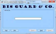 Company: BIS Guard & Co. Country: Israel, Jerusalem, Ofra ASP member: No Company Web site: https://www.bisguard.com Site of program: http://www.bidguard.com Application info: https://bisguard.com/help/java/readme.html Author: BIS Guard Team Sales email: taas@bisguard.com Support email: taas@bisguard.com License type: Shareware Class: Security & Privacy::Other Specific: Categories: Multimedia and Design :: Flash Tools, Utilities :: Security & Encryption, Security Tools :: File Security Platform: Windows OS: Win2000, WinXP, Win7 x32, Win7 x64, Windows 8, Windows 10, WinServer, WinOther, WinVista, WinVista x64 System requirements: JRE 8+ Language: English Limitations: Trial version adds watermark to protected swf files