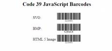 Keywords: code 39 javascript, code 39 html 5, javascript barcode code 39, html 5 barcode code 39 The Code 39 JavaScript Barcode Generator embeds directly into a JavaScript-enabled environment or web page to display static or dynamic data in Code 39 barcode image formats. A Single native JavaScript file may be used to generate barcode images in a variety of formats including SVG and HTML 5. Other features include: -Supports LOGMARS, HIBC and standards and specifications based on the Code 39 barcode symbology. Compatible with Apache Cordova (including Visual Studio), Adobe PhoneGap, Oracle Reports web layout mode, and others. -May be used with JQuery, and supports optional HTML Element ID references. -Supports image types for SVG, HTML 5 Canvas, BMP and Font Image. -Includes advanced support for ASCII functions, GS1, ISBT and HIBC with tilde options. -Compressed and uncompressed source code provided. The JavaScript Barcode Generator is available in several versions and license types to meet any usage scenario. This is the Code 39 version which supports standards based on Code 39. Other versions support invididual barcode types for Code 128, Intelligent Mail, USPS, UPC/EAN, DataBar, PDF417, Data Matrix and QR Code, as well as versions that support all linear barcode types, and all linear and 2D barcode types. Each version is available in license options for single or multiple developers with distribution rights that vary.