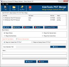 Keywords: Merge Outlook PST Files, Add Multiple PST Files to Outlook At Once, Merge PST Files Outlook 2016, How to Consolidate Multiple. PST Files into One KDETools PST Merger tool is the right pick for you if you want to merge multiple PST files at a go. The tool can combine multiple PST files and makes an individual PST file. The user can add data into the existing PST files. The software enables the user to join numerous Outlook PST files into an individual file. The user can preview the entire data before the Merger process begins. The tool eliminates the duplicate PST files while joining the Batch PST Files. The user can add numerous PST files to Outlook in one without losing any data. The Merger combines Outlook PST files including Contacts, Calendars, Notes, Folders, Subfolders, Tasks, and etc. The advanced tool can merge contacts and calendars into vCard and vCal into new PST. The tool can merge any size of the PST file whether it is small, medium or large. The software can merge the damaged, corrupted, password protected, and orphaned Outlook PST files.