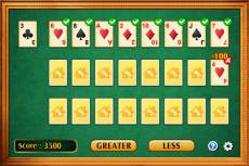 Являетесь ли Вы подмастерьем могущественного предсказателя судьбы в прорицании? Потребуйте себе профессиональное звание в игре Счастливая Карта, в которой Вы будете угадывать, является ли ранг последующей карты выше ли ниже предыдущей. В начале игры, будут сданы, 24 карты, картинкой вверх, они будут разделены на 3 ряда и у Вас будет 10 секунд, чтобы за ними понаблюдать. После этого, карты будут собраны и перетасованы, после чего, перевернуты рубашкой вверх и сданы в ряды. Одна карта, находящаяся в колоде запаса, в верхнем левом углу, будет раскрыта, и Вам необходимо будет угадать, является ли ранг первой карты в верхнем ряду, выше или ниже чем ранг раскрытой карты. Ранги карт, от высшего к низшему, следующие: A-K-Q-J-10-9-8-7-6-5-4-3-2. Сделайте Вашу догадку нажав на соответствующую кнопку внизу экрана, и результат появиться немедленно. Вы можете получить бонусы, если Вы последовательно сделаете правильные догадки, но если Вы накопили 3 неправильных ответа - игра окончена. Пусть Вам сопутствует удача!