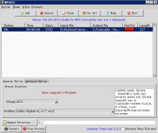 Keywords: ac3, mp3, converter, audio MP3AC3 Freeware is the best software for converting MP3 to AC3. AC3 is the name for audio compression technologies developed by Dolby Laboratories. It is very easy to use without any special setting, only a few clicks complete the task of audio conversion. It is made for the beginner as well as having advanced functions for the professional user. It can detect your hardware configuration and decide an optimized conversion scheme automatically; Converting in batches, convert multiple files at one time; Both multithreading and batch conversion supported; Encode your MP3 files into high-quality, noncorrupted AC3 files so you can record them to DVDs or Blu-ray Disc. Provide greater than 200% converting speed by multithreading, so fast beyond your imagination. Automatically shutdown your computer when the conversion has been completed.