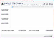 Company: MacSonik Country: United States of America, California, San Jose ASP member: No Company Web site: http://www.macsonik.com Site of program: http://www.macsonik.com/pdf-converter/ Application info: http://www.macsonik.com/pdf-converter/ Author: MacSonik Software Sales email: admin@macsonik.com Support email: admin@macsonik.com License type: Shareware Class: System Utilities::File & Disk Management Specific: Categories: Utilities :: File & Disk Management, Utilities :: System Utilities, Utilities :: Backup, Utilities :: IS/IT Solutions Platform: OS X OS: Mac OS X, System requirements: Mac System with Intel Processor; 500 MB of free disk space Language: English, German, Japanese, Russian Limitations: No limitations
