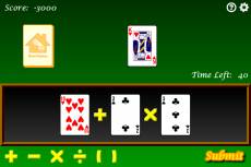 Предлагаем увлекательную задачу для мастеров покера и математических гениев — сможете ли вы составить формулу, дающую результат 24, с помощью знаков арифметических действий, скобок и игральных карт? На каждом этапе игры вам будут предоставлены в случайном порядке 4 карты, арифметические знаки сложения, вычитания, умножения и деления, а также пара скобок. Карты имеют числовые значения, соответствующие их обозначению. Тузы имеют значение 1, короли — 13, дамы — 12, валеты — 11. Перетащите карты на нижнюю панель и расставьте между ними знаки арифметических действий таким образом, чтобы получить в итоге 24. Расположение компонентов на панели можно изменять с помощью перетаскивания. Когда формула будет готова, нажмите для ее проверки кнопку "Отправить" в правом нижнем углу. Если формула неправильная, потребуется изменить порядок компонентов. На каждую попытку создания формулы дается 60 секунд, в правом верхнем углу будет идти обратный отсчет. Когда время истечет, будет показан возможный ответ, но при этом у вас будет вычтено 3000 очков. Преобразуйте свои знания в формулы с помощью арифметических фокусов!