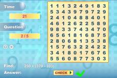 Solving equations may look like a piece of cake to the math masters, but is it still easy when you need to spot the needle in the haystack? Come and check if you are observant enough in this interesting puzzle game with a mathematical twist! Your goal is to solve the given equations one by one, then locate the answers in a grid which contains numerous numbers. When the game starts, a question will be shown at the lower left corner, and the grid will be located on the right of the screen. After solving the equation, you need to click and drag the corresponding numbers in the grid. The numbers can be read horizontally, vertically or diagonally, and can run in any direction, such as from left to right, right to left, bottom right to upper left, etc. After marking the answer, you can click the Check button at the bottom of the screen to see if it is correct. If your answer is wrong, you need to calculate again in order to proceed. A timer at the top left corner will record the time you have taken to answer the questions. Calculate and find out the answers speedily to receive huge rewards!