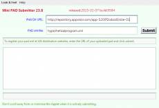 Keywords: submit, pad, xml, DIZ, program descriptor, descriptor, ASP Submitter will submit your PAD *.xml program descriptor file to 69 PADsites. Unlike other submission programs, this program submits only to PADSites that welcome automated submissions and put up no impediments of any kind to automated submission. Compose your PAD *.xml file using a program like PADGen, then upload it to your website. Then enter the URL of your website directory where you upload pads and the name of the pad itself e.g. hypotheticalprogram.xml, then hit SUBMIT. It also has a batch mode to submit a list of PADs to a list of PAD submission sites. The advantages of Mini Pad Submitter over other similar programs are: - The program is free. - You are not required to install any software on your machine, (though you can optionally). - CMP checks all the submission websites twice daily to make sure they are still operational and removes any deadwood from the list. - No hassle setting accounts or passwords or key any hard-to-read captcha security codes. - All is completely automatic. All you need to supply is the PAD url. - The program avoids submitting to sites that have onerous restrictions such as demanding a back link. - The program is open source (full Java source code provided for you to study or modify). You can run it without installing at: mindprod.com/applet/submitter.html To use Submitter, all you have to do is run it as an Applet or an application and type in the URL of your PAD There is also a batch version that works from a list of PAD urls and a list of sites.