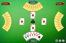 Versuchen Sie 501 Punkte und die Trophäen zu gewinnen! Dies ist ein Spiel für vier Spieler, bei dem gestochen wird. Es wird mit 32 Karten gespielt. Alle 2, 3, 4, 5 und 6 wurden aus dem Standardkartenspiel entfernt. Die zwei Spieler, die sich gegenüber sitzen, spielen als Team, sodass zwei Partnerschaften gebildet werden. Ziel des Spiels ist es, 501 Punkte durch das Gewinnen von Stichen zu erzielen, bevor das andere Team Ihnen zuvorkommt. Zu Beginn des Spiels wird ein Spieler nach dem Zufallsprinzip als Geber bestimmt, wogegen der Spieler rechts vom Geber in der nächsten Runde zum Geber wird. Jeder Spieler erhält drei Karten und dann zwei weitere Karten. Wenn jeder Spieler fünf Karten hat, wird eine aufgedeckte Karte vom Geber in die Mitte des Tisches gelegt. Der Spieler rechts vom Geber kann wählen, ob er die Farbe der Karte als Trumpf akzeptiert und wird dann zum Spielführer. Er kann sich überlegen, ob er passt, sodass der nächste Spieler die Gelegenheit erhält, die Karte als Trumpf zu akzeptieren oder ebenfalls zu passen. Wenn alle während der ersten Runde passen, kann der Spieler zur Rechten des Gebers eine beliebige Kartenfarbe - mit Ausnahme der Farbe der Karte auf dem Tisch - als Trumpf wählen oder er kann erneut passen. Falls er passt, kann der nächste Spieler wählen und so weiter. Sobald ein Spieler einen Trumpf wählt, endet die Phase des Reizens. Wenn alle Spieler in der zweiten Runde passen, wird ein neues Spiel begonnen. Der Spieler links vom Geber wird nun selbst der Geber, und die Karten werden neu gegeben.
