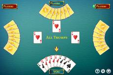 Can you work according to the contracts and win the necessary tricks for your team? In this 4-player card game, the two players sitting opposite to each other will be teammates such that 2 partnerships are formed. A deck of standard playing cards will be used, with all 2, 3, 4, 5 and 6 removed, resulting in a total of 32 cards. The deck is never shuffled and will only be cut before dealing. Each player will be dealt 3 cards then another 2 cards, and after the cards are dealt the bidding phase begins. Each player can choose to bid for a contract or pass. The contracts from lowest to highest are clubs, diamonds, hearts, spades, no trumps, and all trumps. During your turn, you can click to choose an option in the table that appears on the left of the screen. Note that you must make your choice within the given time limit, as indicated by the timer on the screen, or you will lose. If the previous player has bidded for a contract, the next player must bid a higher contract or pass. If only one player has bidded for a contract, that contract will be used for the round, for example if a contract of clubs is used, the clubs will become the trump in the round. The ranks of cards in the trump suit from highest to lowest are J-9-A-10-K-Q-8-7, while the ranks in a non-trump suit are A-10-K-Q-J-9-8-7 from highest to lowest. If all players choose to pass in the bidding phase, the current round will be forfeited, and the cards will be collected and redealt. If your opponent has bidded for a contract, you can choose to double the contract so that the final score in the round will be doubled. If you choose to double the contract, your opponent can choose to re-double, and the final score for the round will be multiplied by 4. When the bidding phase is over, each player will be dealt 2 more cards, and the round will begin.