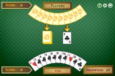Ihr Blatt enthält unbrauchbare Karten und Reihen und Ihr Ziel in diesem Spiel ist es, die Punkte durch die unbrauchbaren Karten zu reduzieren. Reihen sind drei oder vier Karten des gleichen Werts oder drei oder mehr Karten von derselben Spielfarbe in Sequenz. Reihen können sich nicht überlappen, also kann eine Karte nicht zu zwei Reihen gehören. Die restlichen Karten, mit denen keine Reihe gebildet werden kann, heißen Deadwoods (unbrauchbare Karten). Jede unbrauchbare Karte hat Deadwood-Punkte; Ass hat 1 Punkt, 2 hat 2 Punkte usw. und Bube, Dame, König haben jeweils 10 Punkte. Wenn Sie eine Karte abgelegt haben, können Sie die Spielrunde beenden, indem Sie klopfen, wenn Ihre Deadwood-Punkte weniger oder gleich 10 sind. Dann hat Ihr Gegner Gelegenheit, seine unbrauchbaren Karten anzulegen, wenn diese Karten Reihen mit Ihren bilden können. Anschließend, falls Sie weniger Deadwood-Punkte haben als Ihr Gegner, erhalten Sie eine Punktzahl, die der Differenz der Deadwood-Punkte entspricht. Wenn aber Ihr Gegner weniger Deadwood-Punkte hat- das wird „Unterbieten“ genannt - erhält er 25 Punkte plus der Differenz der Deadwood-Punkte. Wenn Sie keine unbrauchbaren Karten haben, darf Ihr Gegner nicht ablegen und Sie erhalten 25 Punkte extra zu Ihrer Punktzahl. Und falls alle 11 Karten Ihres Blatt
