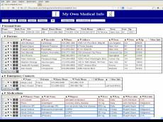 Keywords: personal, individual, medical information, medical records, healthcare management My Own Medical Info manages, stores, and prints the information your life may depend on. What it does for you: * Even if you can't speak for yourself, ensure that medical personnel get the data needed to treat you properly. * Avoid duplicate or conflicting treatments by ensuring each of your doctors knows about the others - and what they are doing. * Makes sure important details aren't forgotten when explaining your medical status to a new caregiver. * Specially designed to track your Doctors, Emergency Contacts, Medications, Pharmacies, Medical History/Conditions, Immunization, and Insurance. How it works: * Uses a single data/app file that doesn't require installation. * Runs on most desktops and laptops as a browser-based app - but doesn't need Internet access. * Custom tabular and form-based input makes it easier and more reliable than do-it-yourself methods. * Locally stored data avoids privacy issues that hosted medical record services may have. * Includes Undo and Redo buttons that let you change your mind and easily fix mistakes. * A built-in PDF generator provides high-quality printable output - in addition to the standard print function. * Includes an AES encryption option for enhanced privacy. * Can export data to a delimited text file (for use by other applications).